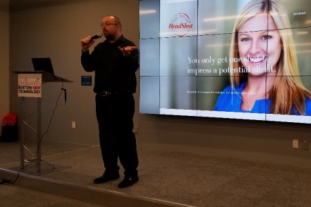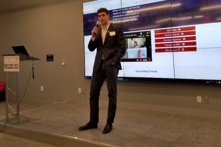 The presentations always begin with quick introductions of Boston New Technology’s sponsors in attendance. In addition to host Mendix, tonight’s other attending sponsors, who each received brief introductions, were Ink’d Stores, Your Profile Video, The Boston Headshot, The Yard: Back Bay, and Tom Maloney Coach.