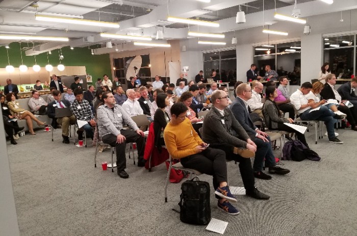 The quick sponsor introductions are generally followed by the meat of the program, five-minute presentations (plus five minute Q&A time) by each of the evening’s showcasing companies.