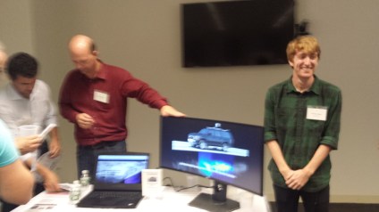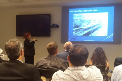 After about an hour of networking, during which attendees chat with the exhibiting companies, the presentations begin. Brief presentations by the “Expert Corner” experts are followed by presentations from four startups selected in a pre-event vote on the Mass Innovation Nights website. And, at the end of the evening, awards are given to the winners of at-event voting (during the networking hour) by attendees.